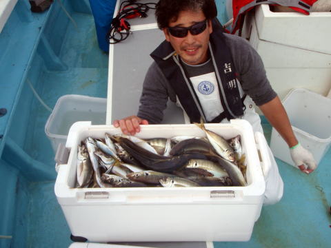 | アジ乗合 35p前後の吉明丸サイズ交じりでしたが(涙) |