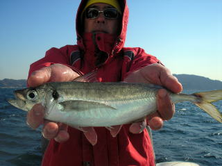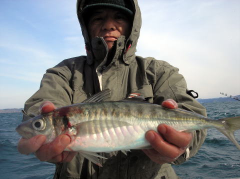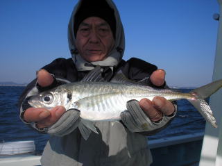 金谷沖では しばらくしてやっとアジの顔が見れ